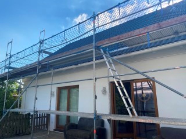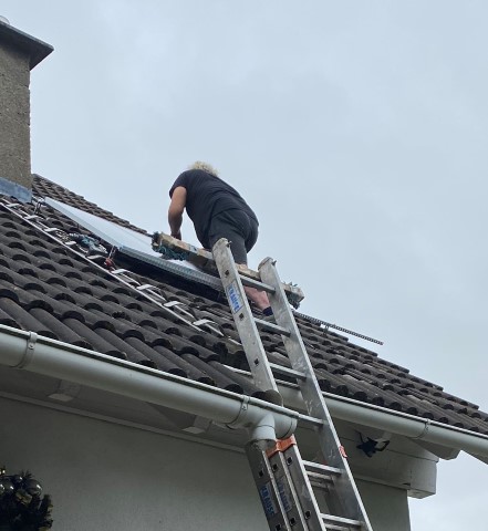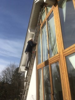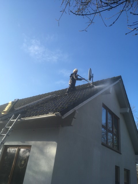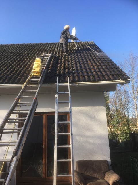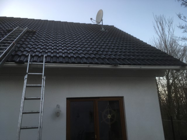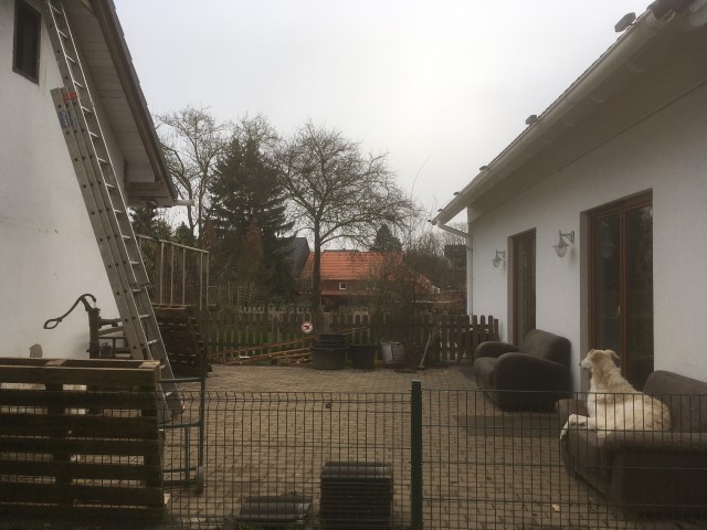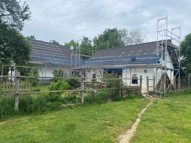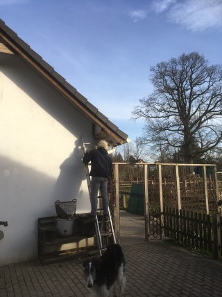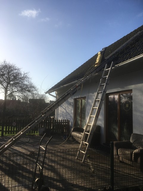 scheint und Achim reinigt das Dach von Haus und Pferdestall, denn hier