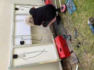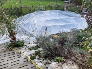 Achim hat aus unserer alten Dinklager Teichabdeckung eine neue geschweißt,