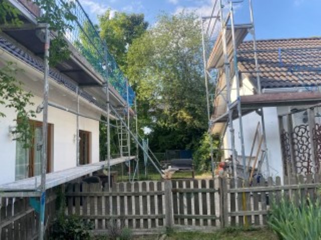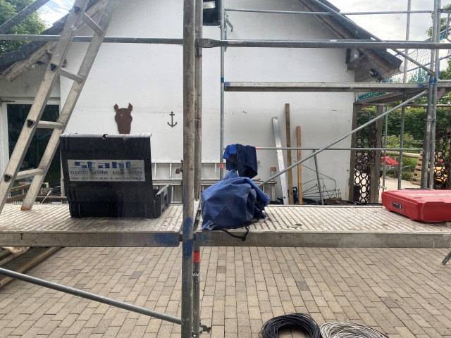 Die Leitern stehen, der Hochdruckreiniger steht