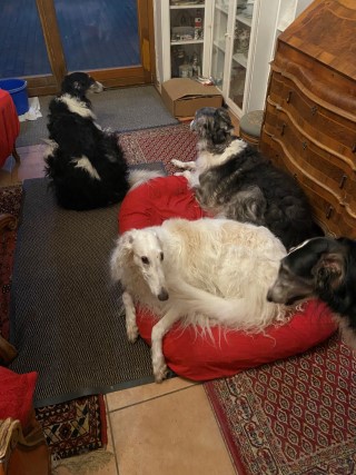 7 große Barsois beschützen unser Haus!