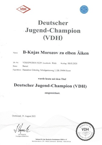Jugendchampion VDH und DWZRV geworden, hat etliche andere Titel gewonnen,