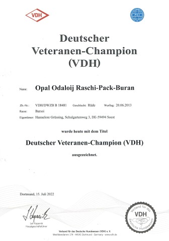 Dt. Vet.-Ch. DWZRV, Veteranensieger Neuss 2022,