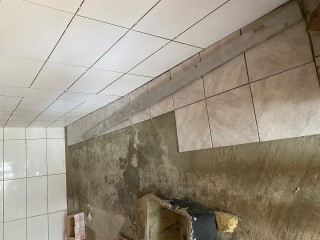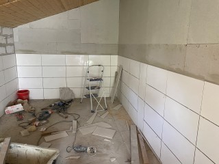 Achim hat eine Wand gefliest und schon Fermacell angebracht. Ich habe mich riesig darüber gefreut!