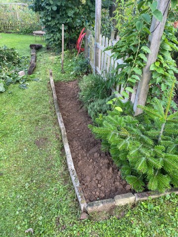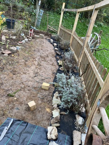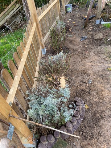 06.11.2023: Heute habe ich den Lavendel umgepflanzt. Er wurde uns zu groß an der Treppe. So kann er gemütlich am Zaun wachsen. Doch es war ein ganz schöner Akt! Vor allem bei dem Wetter! Morgen geht es weiter!