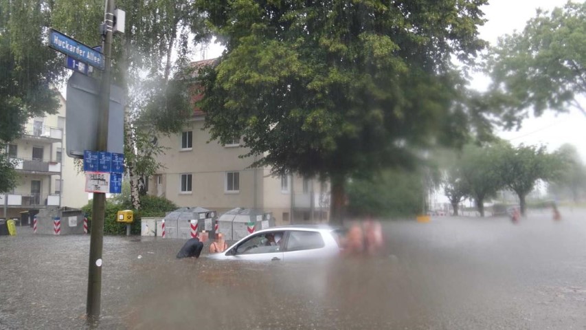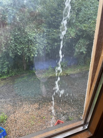 Und dann heute Abend, nach dem Gewitter: Blaulicht auf der Brücke bei uns! Was da los war, wissen wir nicht, vielleicht steht es ja morgen in der Zeitung.