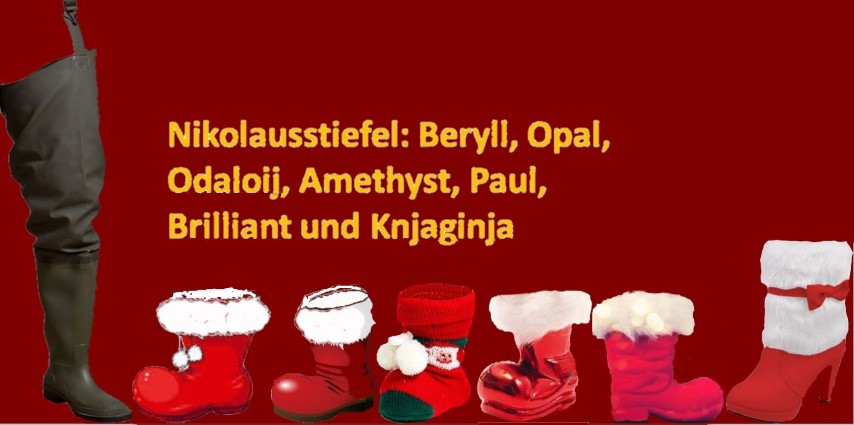 Alle haben ihre Stiefelchen vor die Tür gestellt, selbst Knjaginja hat einen Pumps dafür hergegeben, nur Beryll hat angst, zu kurz zu kommen! Mal sehen, was der Nikolaus dazu sagt: