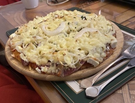 Unsere Pizza ist fast genau sohoch wie meineTorte! Beide sind sehr lecker!