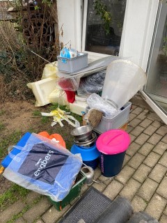 21.02.2023: Heute habe ich das Welpen - Equipment ausgeräumt! Und abgedeckt, falls es regnet! Dann kommt die Wand raus.