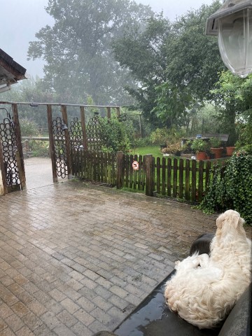 07.04.2023: Gestern noch das schönste Wetter, heute: Regen! Karfreitag halt! Gerne hätte ich etwas Zeit im Garten am Teich verbracht, doch das war uns heute nicht vergönnt! Naß, alles naß, selbst den Fischen steht das Wasser bis zum Hals!