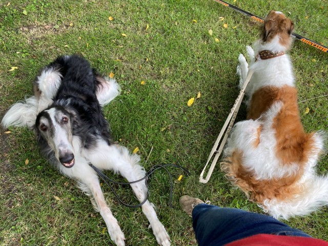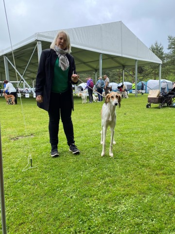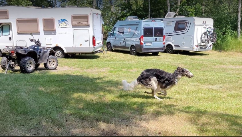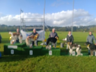 15.10.2023: Am Freitag bin ich mit Gasthündin Knjaginja von David nach Hoope zum coursing gefahren. Ich hatte einen sehr schönen Abend inmitten der "Hooper" und konnte anschließend auch sehr gut schlafen. Die Nacht über gab es ordentliche Regenschauer, am Samstag Morgen schien für uns die Sonne. 2 mal zog ein keiner Regenschauer auf, das war es dann. 2 "elben Äikener" Schwestern waren am Start, das freute mich sehr. Und nach dem 1. Durchgang standen sie Puktgleich an 1. Stelle! Das freute mich sehr, doch alle lagen Punkte mäßig sehr dicht zusammen, es waren ja alles sehr gute Hündinnen am Start!