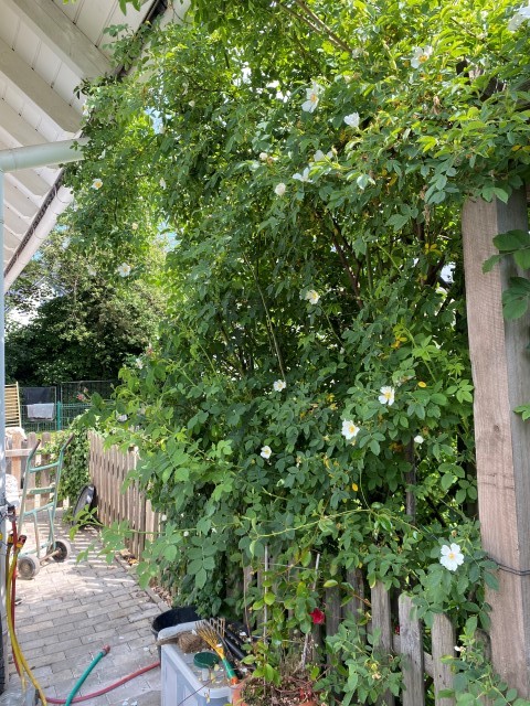 Noch sieht es aus wie abgekaut, doch wenn die letzte Rose geschnitten ist, wird ausgedünnt und aufgeräumt!