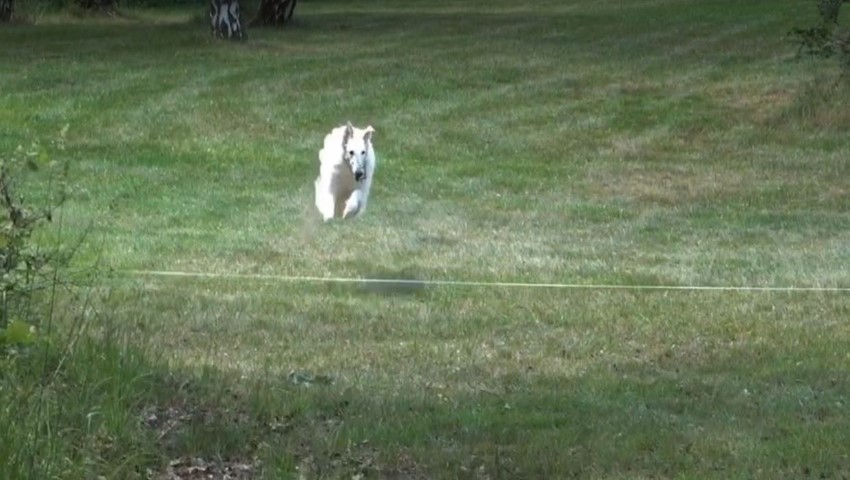 Und es gab eine funkelnagelneue Hasenzugmaschine! Schön leise und ganz leicht zu bedienen! Sie startete auf "Knopfdruck"! Alle waren begeistert. 2 x wurde ohne Hunde gezogen, um die Bedienung sicher zu können, dann ging das Training los. Inzwischen war es schon nach 13 Uhr, doch, wie gesagt, wir waren wenige. 2 Podencos liefen zuerst, dann Knjaginia. Dann sollten 2 Greys laufen, einen startete ich. Doch wir warteten und warteten! Also Abbruch und hin, sehen, was los war. Der neue Hasenzug sprang nicht mehr an. Alle Bemühungen halfen nicht, der Anlasser war und blieb kaputt! Wie gut, das es noch den alten gab!!!