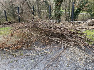 09.12.2023: Heute vormittag haben wir die 1. Auffahrt von den geschnittenen Rosenästen und einem Teil der Blätter befreit. Der Anhänger ist schon voll, dabei ist noch gar nicht alles drauf! Montag erst können wir ihn leeren.