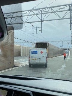 13.03.2023: Der Tag danach!!! Am Donnerstag sind wir nach England/ Birmingham aufgebrochen. Brilliant und ich fuhren zuerst nach Dortmund, von dort aus brachte uns Jürgen nach Frechen, wo wir zu Stephi und Nadine umstiegen. Die jedoch hatten Stau und waren 1 1/2 Stunden zu spät da. So mußten wir uns richtig sputen, um den Autozug pünktlich zu erreichen! Durch Deutschland, Belgien und Frankreich! Toll gefahren, hat geklappt! Wir waren pünktlich! Schnell durch die Ped-Kontrolle und fertig für den Zug!