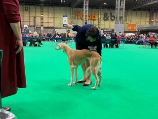 Brilliant und ich haben später noch "Fellpflege" betrieben, ich in der Dusche, er mit der Bürste, dann schauten wir Fernsehen auf englisch. An Samstag waren u.a. die Windhunde dran. Wir waren ganz früh da, damit wir uns gut einrichten konnten.