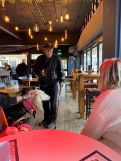 Wir haben interessante Plätze und Straßen gesehen, es war schon sehr schön. Der Gentleman hat sich sehr über unsere Hunde gefreut und uns die Getränke und das Essen spendiert! Wir haben uns sehr gefreut!