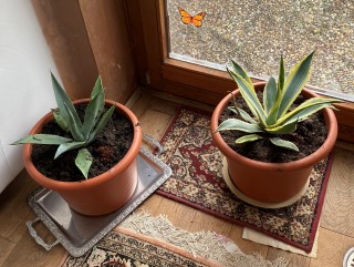 Eine Agave hat mir bei Umtopfen durch den Handschuh gestochen, eine Vene getroffen, alles dick und blau! Undank ist des Gärtners Lohn! Nun liege ich gemütlich auf dem Sofa. Brilliant findet das befremdend und dann nur noch langweilig! Ganz herzliche Glückwünsche von uns allen!