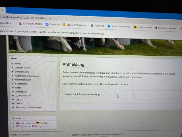 02.01.2023: Tag 2 im Neuen Jahr! Achim ist wieder nach Rostock unterwegs, ich esse aus Frust eine Schachtel Pralinen, der Alltag hat uns wieder! Der Himmel ist "Champagner-grau", und es regnet. Morgen, Morgen wird aufgeräumt, wieder geputzt, heute ist "Waschtag"! Ich habe die "Steuererklärung" vorbereitet, und mir den Ausstellungskalender des DWZRVs angeschaut, der coursing-Kalender ist ja noch nicht online.