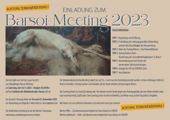 18.11.2023: Heute war unser "Barsoi-Meeting" in Hassia!