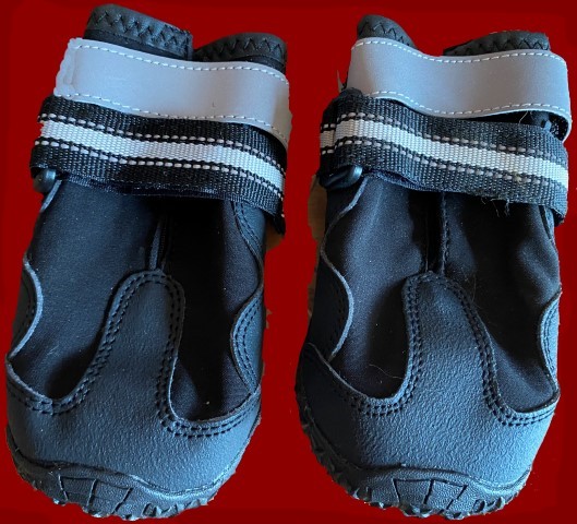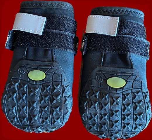 16.11.2023: Wie gut, daß wir mit allem möglichen ausgestattet sind! Heute morgen habe ich im "Bestand" unseres Welpenzimmers nachgeschaut, ich wußte, wir haben noch "Hundeschuhe". Und ja, da sind sie: