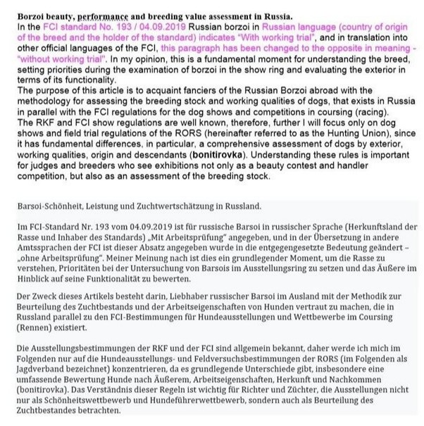 13.11.2023: Manchmal wundert einen nichts mehr!!! Hier ein interessanter Punkt, der bei der Übernahme des russischen Standards vom FCI und anderen Nationalen Verbänden einfach weggelassen wurde!