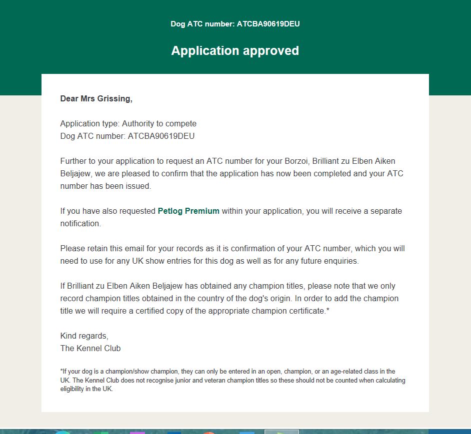 21.04.2023: Heute bekam ich eine e-mail von der Sportkommission mit der Nominierungsliste für die coursing-Weltmeisterschaft in Schweden.