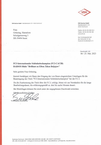 11.01.2023: Endlich sind auch sie da, die Veteranen-Championatsurkunden DWZRV für Amethyst, Opal und Odaloij! Jetzt warte ich nur noch auf Amethyst`s VDH-Vet.-Championatsurkunde! Doch die sind ja immer recht schnell.
