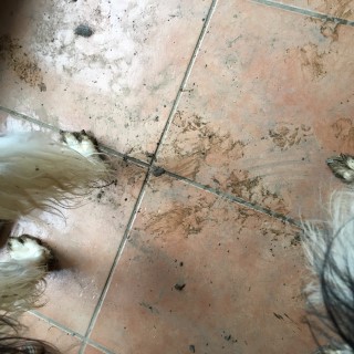 06.01.2024: Knochen fassen! Oh je, rote Füße und ansonsten dreckig!!! Und dann ins Haus!