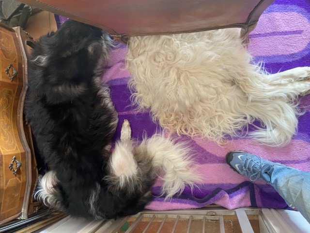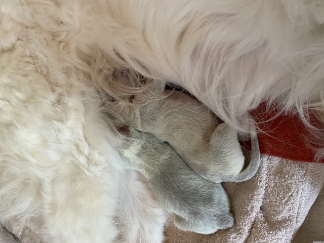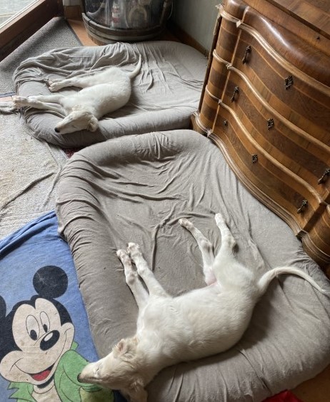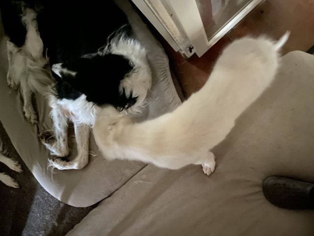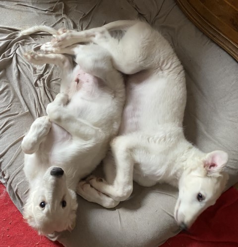 21.10.2024: Ich mache mir große Sorgen um unseren kleinen "Weißen"! Seit ein paar Tagen frißt er nicht mehr richtig und liegt träge rum. Leo "parkt" meistens fürsorglich neben ihm. mal schaun, wie sich das ausgeht.