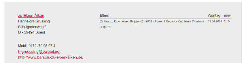 Ein sehr freundlicher Richter mit viel Einfühlungsvermögen für unsere jungen Barsois. Herzlichen Dank für die tolle Wertschätzung unserer Hunde. Auch die "Buckelige Verwandschaft" schnitt vorzüglich an: