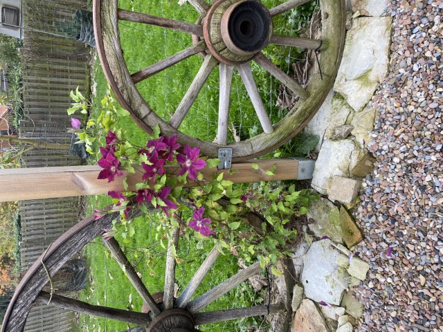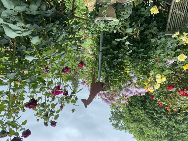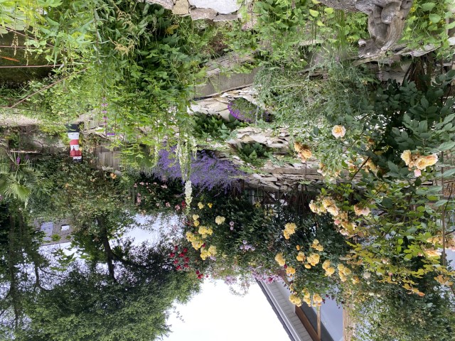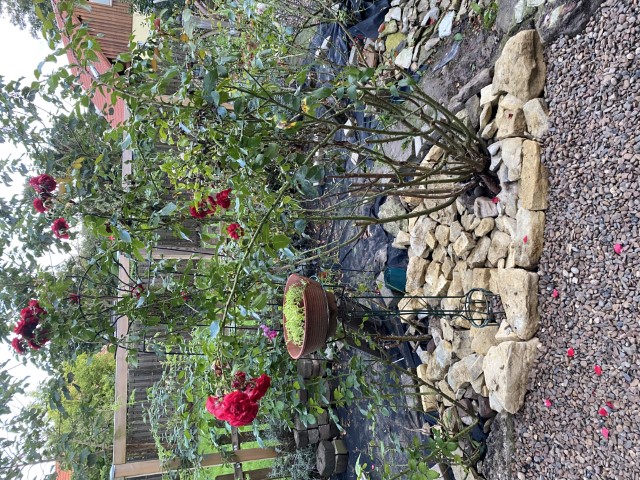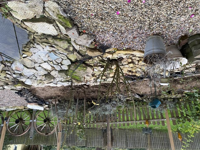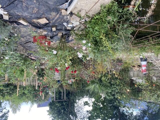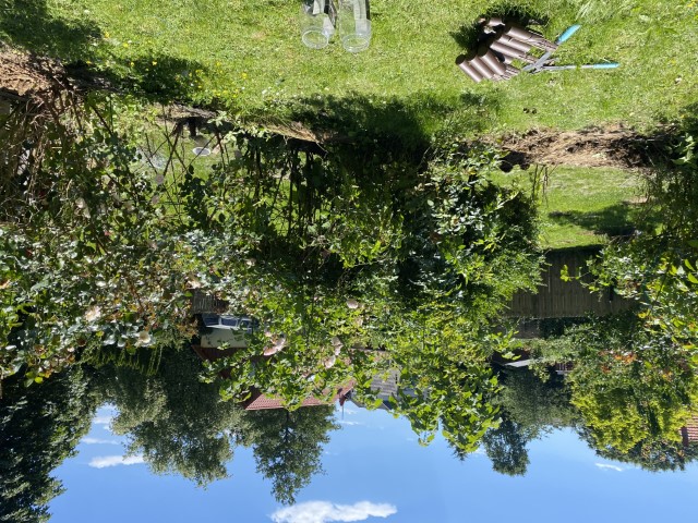 Heute habe ich das Ankleidezimmer umgeräumt, gestern wieder viel am Teich gewühlt: Platten unter den Zaun gelegt, also wieder Erde bewegen, und das am Hang! Glitschig und steil! Dann die Wurzel eines Sommerflieders und eine wilde Rose entfernt! Alles bei Nieselregen!