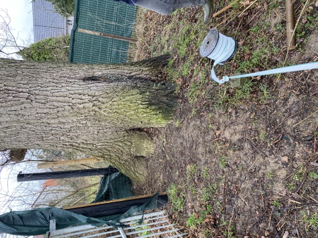 Bei der Eiche muß dringend das tote Holz entfernt werden. Wenn davon was auf die Straße kracht, bei den Wetterunbilden, die wir in letzter Zeit so haben, na, das kann teuer werden! Wir haben schon mit einem Fachmann gesprochen und hätten die Kosten dafür auch übernommen, immerhin muß dafür ein Krahn und ähnliches Geschütz her, und der Mann oder die Männer arbeiten ja auch nicht um sonst! Nun zeigt sich, daß wir kaum noch Anteil an der Eiche mehr haben! Wie schön!!! Unser Portemonaie freut sich!