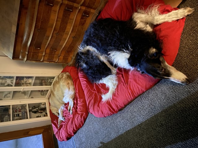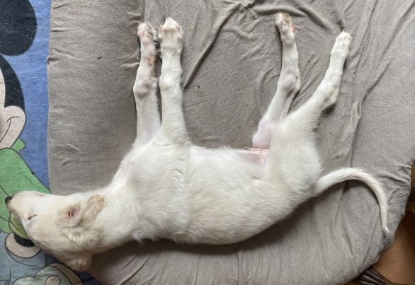 26.01.2023: Ein total satter Hund ohne Kopf! Brilliant rekelt sich genüßlich.