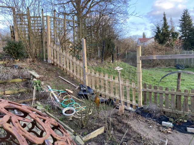 05.02.2024: Endlich ging es am Teich weiter. Der Zaun steht, muß nur noch ober bearbeitet werden, doch ich kann mit Pflanzen beginnen. Viel harte Arbeit wartet noch auf mich!