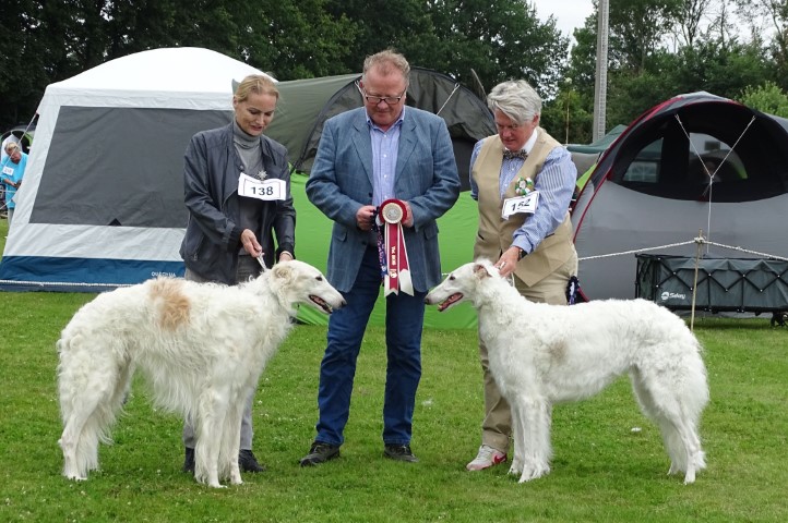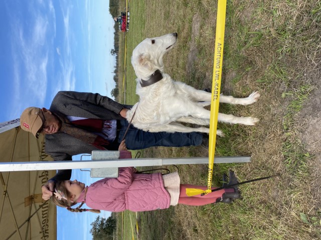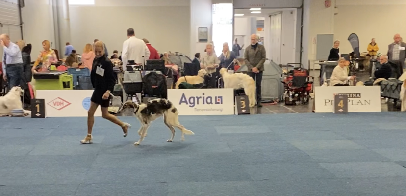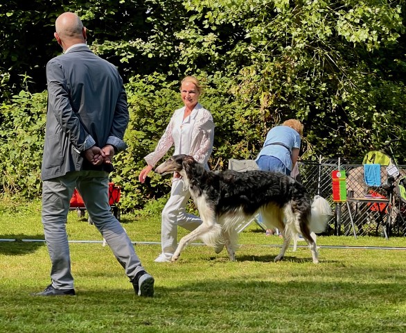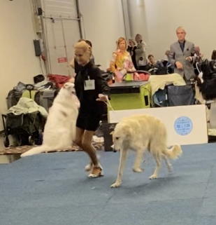 Wir waren dort mit Freunden verabredet und freuten uns schon sehr darauf. Die Barsois waren gleich zu Anfang dran. So waren wir auch früh fertig. Wir hatten viel zu erzählen und sehr viel Spaß und zu lachen. Richter Olaf Knauber war sehr begeistert von unseren Jüngsten! Wir auch, denn sie waren so relaxt und ließen sie durch Nichts und Niemanden beeindrucken. So bekamen sie auch tolle Bewertungen. Für sie war es eine schöne Übung!