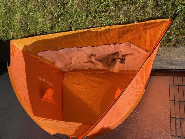 25.11.2025: Naß und windig ist es, und Corund findet, das sei das ideale "Windhundwetter", schüttelt sich, und alles ist naß!