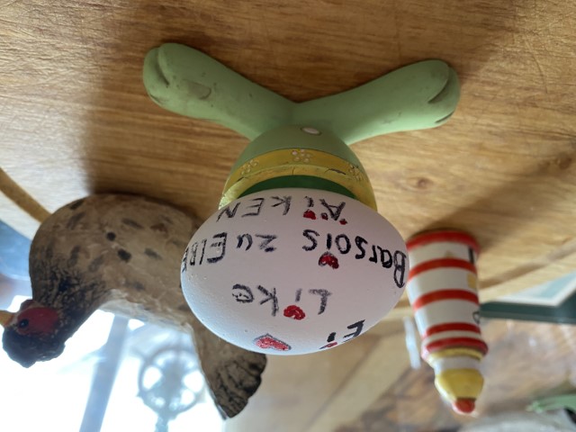 Na, der Monat fängt ja gut an, eine Überraschung jagt die nächste! Langeweile ist was anderes! Da kommt man noch recht schlaftrunken in die Küche und tritt auf was Hartes! Ausch, das tut weh! und dann hebt man das auf und denkt: Was - um Himmels Willen - ist das denn? Gleich danach stellt sich eine weitere entscheidene Frage: Was - um Himmels Willen - WAR das denn?