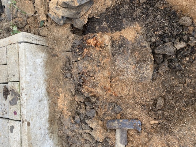6.11.2024: Der Schock heute Morgen sitzt noch tief! Die US-Wahl! Quo vadis Erde? Gestern war das Wetter noch freundlich und hell, so haben wir mal wieder im garten gearbeitet. Beim Pflastern stieß Achim auf einen Baumstumpf, der hart wie Kruppstahl war. Doch der mußte trotzdem weg!