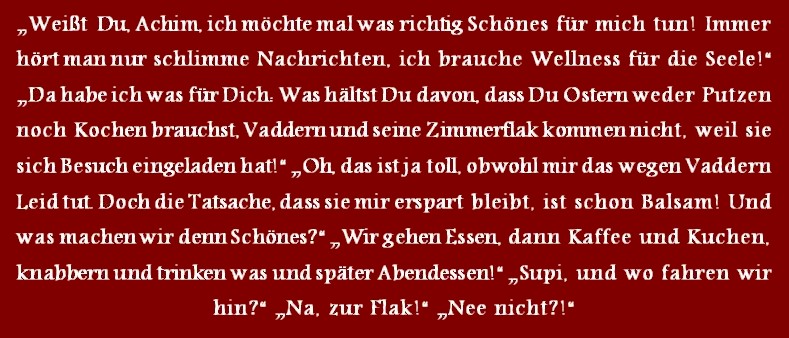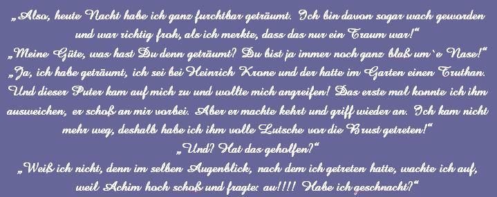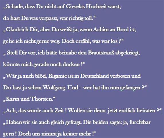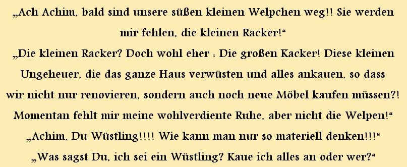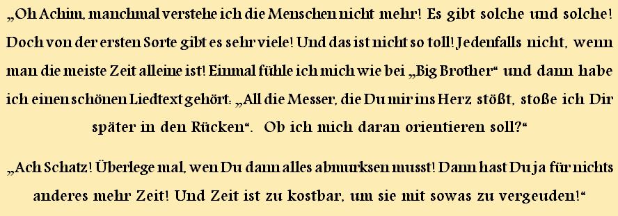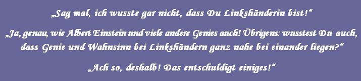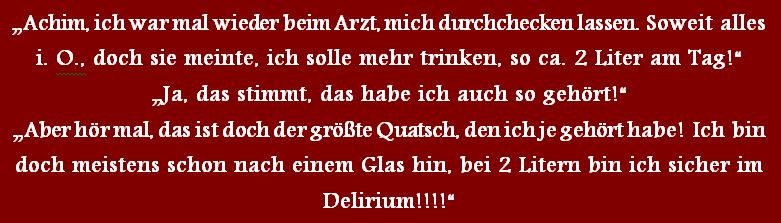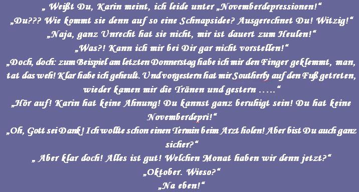 Die Sprüche der Wochen ....Zu Anfang war unsere website blau! Doch, nachdem ich allein für sie verantwortlich war, habe ich sie komplett geändert, weil ich an diese Zeiten nicht mehr ständig erinnert werden wollte!