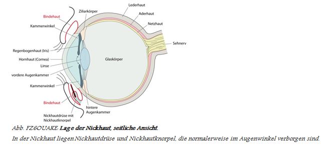 genannten Nickhautknorpel (Blinzknorpel) und der Nickhautdrüse, die bis zu