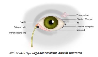 40% der Tränenflüssigkeit produziert. Die Nickhaut wird wie ein