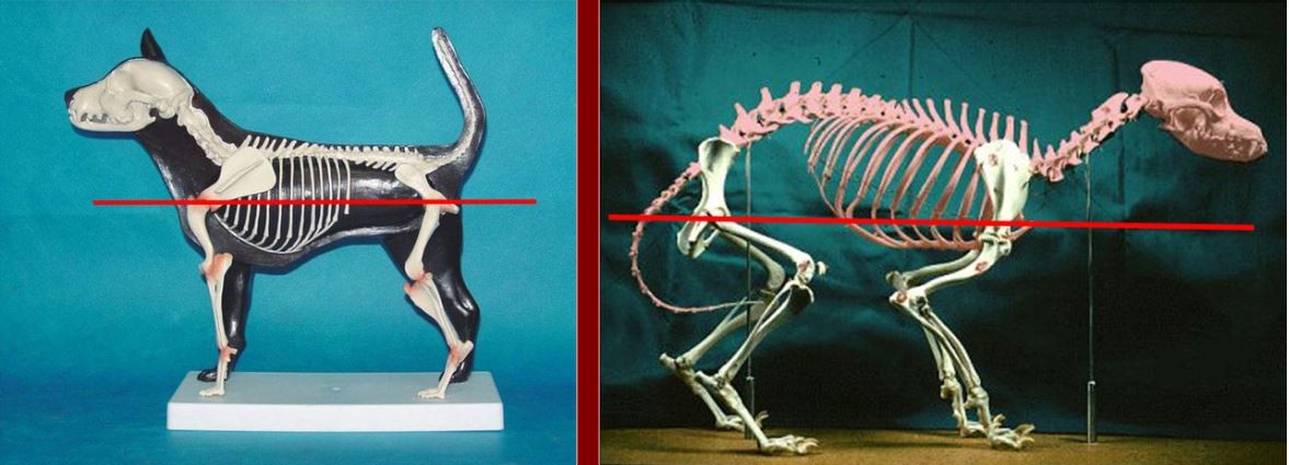 Da man sich immer schon bewusst war, dass sich der Vierfüssler nur dann ergonomisch bewegen kann, wenn die Drehpunkte der vorderen und der hinteren Extremität auf gleicher Höhe liegen, versuchte man, anatomische Zeichnungen und die Konstruktion von Skeletten so darzustellen, dass Schultergelenk und Hüftgelenk auf gleicher Höhe liegen. Dies führte zu sehr eigenwilligen Darstellungen: