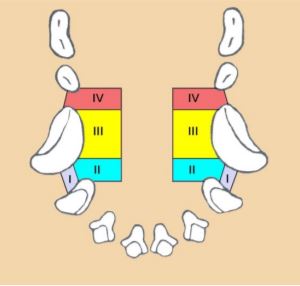 Die Zähne des Hundes: Auf diesem Bild werden die Zähne des Hundes benannt und zeitlich zugeordnet. Zahnstein: Normal haben Wölfe das nicht und Hunde auch nicht, denn sie reinigen sich die Zähne mit Knochen. So sind die Kugelgelenke sehr gut zum Reinigen. Zahnengstand, schiefe Zähne: Auch hier sind große Knochen wahre Wundermittel! Wie oft habe ich erlebt, dass bei jungen Hunden sich durch tägliches intensives Knochenkauen die Zähnen sich wieder von selbst gerichtet haben! Ganz mal abgesehen von der Portion Kalk, die dem jungen Hund so zugeführt wird. ![]() Gebißfehler: Gerade bei Barsois, deren Fang lang und schmal ist, kann es hin und wieder zu "Fangzahnengstand" kommen. Hier ein Auszug von einem Artikel von Dr. Markus Eickhoff, der die Problematik sehr gut erklärt: Der Zahnwechsel Der Ausfall der Milchzähne (Dentes decidui) des Hundes beginnt mit dem 3. Lebensmonat. Sie werden von ihren Ersatzzähnen gefolgt und hinter der Milchzahnreihe durch Zuwachszähne ergänzt (Dentes permantes). Ontogenetisch betrachtet entwickeln sich die permanenten Nachfolger lingual bzw. palatinal der Milchzahnreihe. Zum Zeitpunkt des Zahnwechsels werden die Wurzeln der Milchzähne resorbiert und geben den Weg vor für den Durchbruch der Nachfolger. Nach oder mit Ausfallen des Milchcaninus bricht der permanente Caninus in relativ steiler Position durch das Zahnfleisch und gelangt mittels einer Auswärtskippung in seine physiologische Stellung. Nach Erreichen der natürlichen Kronenhöhe verzahnt er zwischen dem seitlichen Oberkieferschneidezahn und dem Oberkiefercaninus. Der Durchbruch der Canini beginnt im 5. Monat und kann bis zum 10. Monat dauern. Die funktionell wichtige Stellung im Hundegebiss lässt sich aus der Namensgebung „Fangzähne“ ableiten, morphologisch wird dieses gestützt durch die flächenmäßig größte Verankerung in ihren Zahnfächern (Alveolen), so machen z. B. die Wurzeln der Canini den Hauptanteil des vorderen Unterkiefers aus. Welche Ursachen führen letztendlich dazu, dass es zu einer Abweichung von der Regelverzahnung kommt? Grundsätzlich unterschieden werden kann das Entstehen von Fehlstellungen bei korrekter Kieferbasis von Fehlern, die ihre Ursache in Abweichungen der Kiefergröße haben. Erstere bezeichnet man als dentoalveoläre, letztere als basoskelettale Abweichungen. Diese Unterscheidung sagt nichts darüber aus, ob die Erkrankung entwicklungsbedingt oder genetisch bedingt ist. Zahnfehler (Dentoalveoläre Abweichungen) Bei korrekter Kieferbasis kann ein Steilstand der Unterkiefercanini zur Traumatisierung des Oberkieferkamms, und bei hochgradigen Fehlstellungen des harten Gaumens führen. Der Grad der Traumatisierung des Oberkiefers (Abb. 1) reicht von einer geringgradigen Impression, über Ausbildung einer Gingivatasche, bis hin zu tiefen, hochgradig entzündeten Läsionen des knöchernen Gaumens, im Extremfall mit Ausbildung einer oronasalen Fistel. Als Ursache eines Caninussteilstandes wird häufig die Persistenz des Milchcaninus angesehen, durch welche der permanente Caninus abgelenkt wird bzw. nicht in die notwendige Auswärtskippung gelangen kann. Milchzahnpersistenz ist eine Erscheinung insbesondere bei Toy-Rassen, welche jedoch von einem Steilstand der Canini nicht häufiger betroffen sind als andere Rassen. Entfernt man persistierende Milchcanini frühzeitig, ist in vielen Fällen trotzdem eine Steilstellung der bleibenden Canini zu beobachten. Daten zur Erblichkeit liegen bisher nicht in ausreichendem Maße vor. Eine weitere Ursache für dentoalveoläre Fehlstellungen ist eine falsche Keimlage. Trotz physiologischer Winkelung des Unterkiefercaninus kann eine zungenseitige (linguale) Keimlage zur Traumatisierung des Oberkiefers führen. Auf einer korrekten knöchernen Basis (Eugnathie) mit Normalbiss treffen die Unterkieferincisivi auf die Palatinalfläche der Oberkieferincisivi (Cingulum). Der Unterkiefercaninus verzahnt mit gleichem Abstand zwischen seitlichem Oberkieferincisivus und Oberkiefercaninus. Die Spitzen der Unterkieferprämolaren zeigen um eine halbe Zahnbreite nach vorn versetzt mittig in den Interdentalraum der Oberkieferprämolaren. Die Palatinalfläche des Oberkieferreißzahnes (P4) liegt dicht an der Außenfläche des unteren Reißzahnes (M1). Der distobukkale Höcker des unteren ersten Molaren trifft in die zentrale Grube des oberen ersten Molaren. Das Vorliegen von basoskelettalen Fehlern ist ungleich schwerer zu korrigieren als reine Zahnfehlstellungen, da der Kiefer nicht die notwendige knöcherne Basis bietet. Findet sich eine Traumatisierung des Gaumens durch einen Unterkiefercaninus, sollte daher immer eine Diagnostik hinsichtlich der Ursache der Fehlstellung erfolgen, um kieferorthopädischen Regulierungen prognostisch besser einschätzen zu können. Ein Schema zum Auftreffen der Kronenspitze des Unterkiefercaninus am Gaumen erlaubt eine einfache Klassifikation. Behandlung Unterkiefercaninussteilstand Extraktion Die Extraktion stellt eine aufgrund der Zahngröße sehr traumatische Therapieform dar und führt insbesondere bei beidseitiger Notwendigkeit zu einer Schwächung des vorderen Unterkiefers. Funktionell büßt der Hund die Halte- und Greiffunktion der antagonisierenden Canini ein, die Zunge verliert ihre Führung. Zahnkürzung mit Vitalamputation Bei einem hochgradigen Fehlstand (Grad 3), bei welchem die Spitze des unteren Caninus palatinal im Parodont des oberen Caninus oder im harten Gaumen einbeißt, ist das Einkürzen des Zahnes und dessen Versorgung durch eine Vitalamputation Mittel der Wahl (Abb. 4a und b). Gefahr diese Versorgung ist die mögliche Entstehung einer Pulpitis („Nerventzündung“) mit nachfolgender Untergang der Pulpa („Zahnnerv“). Dieses kann auch als Spätfolge auftreten, Langzeitröntgenkontrollen sind daher unerlässlich. Tritt dieser Fall ein, ist die endodontische Versorgung problematisch, da bei jungen Tieren kein apikaler Wurzelschluss vorliegt. Die funktionelle Einschränkung du