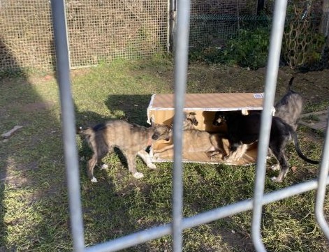 Nach ausgiebigem Spiel sind alle wieder im Welpen-Gehege, doch lange noch nicht müde!