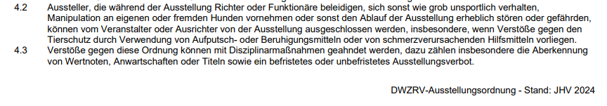 Was mich berührte oder mir gerade am Herzen liegt: ___________________________________________ Für jede Freude bezahlt man mit Tränen! _______________________________________________________ 11.12.2025: Wir haben bei den Ausstellungen Meldeschlüsse, bei den "großen" VDH-CACIBs waren es maximal 2, jetzt meisten 2-3, bei den CAC-Ausstellungen normalerweise 1, manchmal auch 2. So weit, so gut! Doch es scheint jetzt die Regel zu werden, daß zum Einen die Meldeportale länger "offen" bleiben, zum Anderen die Meldeschlüsse "offiziell" immer weiter verlängert werden. Da drängt sich mir die Frage auf, warum? Klar, die Meldezahlen sind nicht mehr so hoch, wie früher! Logisch, denn es ist letztlich ein erheblicher Kostenfaktor geworden für viele, und da überlegt man sich schon, ob es sich lohnt, das teure Meldegeld zu zahlen, sich auf den ( manchmal ) sehr weiten Weg zu machen, sich ggf ein Hotel für 1-2 Übernachtungen zu suchen. Da ist man schon oft bei 3-500 €! Aber glaubt der Veranstalter wirklich, durch die ständigen "Verlängerungen" so viel mehr Meldungen zu bekommen? Ein paar mehr vielleicht, doch die Verärgerung der "pünktlichen" Melder sollten sie nicht außer Acht lassen, denn diese "Nachmeldungen" hinterlassen oft ein "Geschmäckle", wie es so schön heißt. Nur, um ein paar "Spekulanten" die Möglichkeit zu geben, bei wenigen oder keinen Teilnehmern in einer "Klasse" noch schnell was "abzuräumen", ich weiß nicht, ob das der richtige Weg ist. Wer sich fäir messen will, meldet auch im ausgeschriebenen Rahmen. Auch sollte man sich in dieser Zeit gut überlegen, Richter*innen einzuladen, die hinter der vorgehaltenen Hand "politisch" oder "engfreundeskreislich" richten. Dafür werden Hunde abgestraft, die das nicht verdient haben. Z.B. erzählte mir ein Teilnehmer, der ganz neu auf einer Ausstellung war, sein junger Whippet bekam ein "nicht versprechend", ein anderer bekam ein "Ungenügend". Sarkastisch sagte ersterer mir, es würde ihn unheimlich motivieren, weiter zu machen! Und er war nicht der einzige, der sich - zu Recht - so äußerte. Natürlich gibt es Hunde, die ein Richter nicht so schön findet, wie andere, doch das liegt im "Auge des Betrachters", der "Standard" war erfüllt. Da gibt es andere, feinere Möglichkeiten, und man darf auch seinen eigenen Frust nicht an andere auslassen! Bei solchen Vorfällen brauchen VDH und DWZRV keine Feinde mehr. 08.11.2025: CACIBs in Dortmund, immer wieder sehr interessant für "Studien". Wir haben ein neues Tierschutzgesetz, das u.a. das Unterbringen auf Ausstellungen regelt.