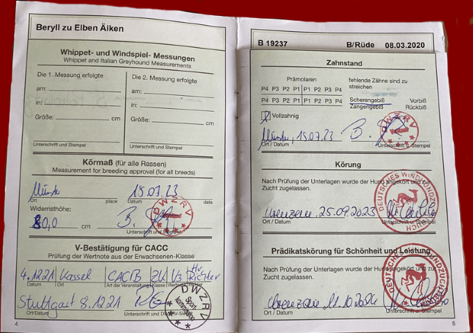 Deutscher Champion VDH, DWZRV-Leistungsurkunde Coursing, CACIL-Prüfung