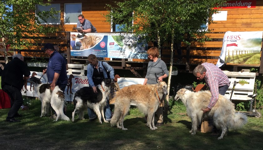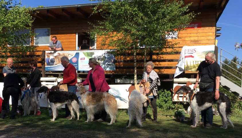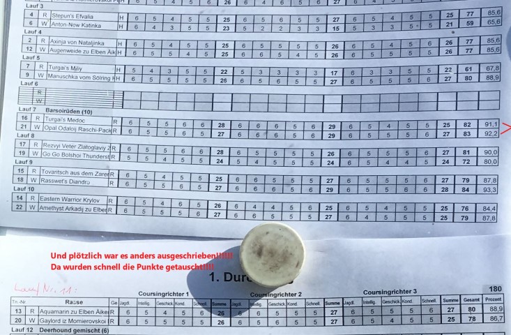 Landstuhl Verbandsmeisterschaften 30.04.-02.07.2017 ![]() Amethyst: verletzte sich vor dem 2. Lauf, als er aus dem Auto sprang. Opal: 4. Platz Aquamarin: 6. Platz Augenweide: 5. Platz ![]() Amethyst im 1. Durchgang am "Hasen"! ![]() ![]() So wurden nach der 3. Änderungen!!!!! der Rüdenlaufzusammenstellung Opal plötzlich Punkte abgezogen und er damit runtergestuft, und er lief dann in Lauf 62 unter rot!!!!! Hm!!!! Das hat ihn den Titel in Köln am 08.06.2017 gekostet. Er gewann die mit 7 Champion gefüllte Siegerklasse, doch es fehlte ihm 1 einziger Punkt für den S&L- Bundessiegertitel!!!!! |