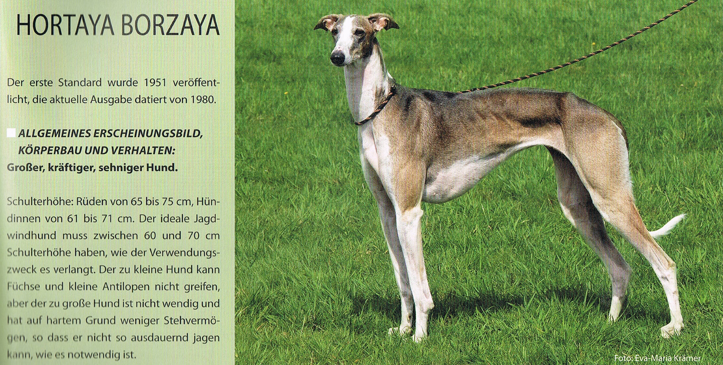 wurden in der Fachzeitschrift American Naturalist veröffentlicht. __________________________________________________ Größenvergleich zwischen dem russischen Standard, dem des "Allgemeinen Deutschen Windhundclubs", aus dem der heutige DWZRV hervorgegangen ist, und dem heute gültigem Standard des DWZRV: Jetzt gibt es einen neu überarbeiteten Standard, in dem es als Fehler gilt, wenn die Größenangaben 2 cm über- oder untersteigen!!! Das ist eine Verbesserung! ______________________________________________________________ Der russische Barsoirichter-und Barsoikenner General George de Meyer schrieb über die Größe unserer Barsois folgendes und bezieht sich auf die Größenangaben von 1913 ( nicht auf die heutigen!!!!): ![]() ______________________________________________________________ ![]() Der Chortaj ( Hotaya Borzaya, auch Hort, Horty genannt ) ist ein russischer Windhund, der von Jägern gezüchtet wurde/wird, und immer noch im Schatten des Barsoi steht. Weshalb ich den hier mit ins Spiel bringe? Nun, die Begründung der Größenrange! Hier heißt es: "Der ideale Jagdwindhund muss zwischen 60 und /0 cm Schulterhöhe haben, wie der Verwendungszweck es verlangt. Der zu kleine Hund kann Füchse und kleine Antilopen nicht greifen, aber der zu große Hund ist nicht wendig und hat auf hartem Grund weniger Stehvermögen, so daß er nicht so ausdauernd jagen kann, wie es notwendig ist. ( nachzulesen in der UW November 2013 ) Das gilt letztendlich auch für den Barsoi. Nicht, dass der jetzt ca. 10 cm kleiner sein soll, wie er jetzt ist, denn er ist inzwischen hier bei uns eher der Showhund geworden. Auch braucht er die Ausdauer eines Chortajs nicht in dem Maße, da er anders jagt. Doch die russischen Jäger, die mit den Barsois auch heute noch zur Jagd gehen, schätzen die Größen um 75-78 cm Stockmaß! Genau, aus oben beschrieben Gründen! Das sollte uns zu denken geben!!! Aus der Erfahrung heraus sollte gesagt werden, dass "alte" Rassen auch alt werden. Das sieht man in der Pferdezucht ebenso, wie auch bei den Windhunden. Ponys und Vollblüter werden im Vergleich zu den Warmblutpferden sehr alt, und das hat mit ihrer Größe nichts zu tun, denn so klein sind ja Vollblüter nicht. Windhunde, auch größere wie der Barsoi, werden auch alt. Unsere Barsois werden normalerweise 12 Jahre und älter. Ich kenne Barsois von uns, die 14 - 16 Jahre alt wurden. Da die Irish Wolfhounds als die größte Windhundrasse eine eher kurze Lebensdauer haben, sollte man über sie wissen, dass die ursprüngliche Rasse ausgestorben war. Captain George Augustus Graham ![]() ( 06.08.1833 - 21.10.1902 ), ein britischer Kynologe, hat diese Rasse ab 1862 neu entstehen lassen aus einem "Gemisch" verschiedener Hunde-und Windhundrassen, auch Barsois, die Größe wurde u. a. über das Einkreuzen von schweren Doggen erreicht. Wissenschaftlich ist noch nicht belegt, ob es sich bei den ursprünglichen Irish Wolfhounds wirklich um eine "eigene" Rasse handelte, oder ob sie nicht nur eine Größenselektion der Deerhounds war. Der Maler Paulus Pieterszoon Potter ( gest. am 17.01.1654 ), ein niederländischer Landschafts - und Tiermaler, malte zwischen 1650 und 1652 ein Bild von einem "Wolfshund". Das war ca 210 Jahre, bevor Captain Graham die Rasse neu erschuf. Man darf davon ausgehen, dass damals diese Hunde noch nicht ausgestorben waren.
