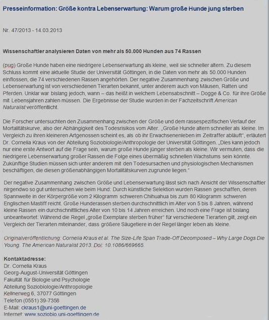 der Universität Göttingen, in die Daten von mehr als 50. 000 Hunden