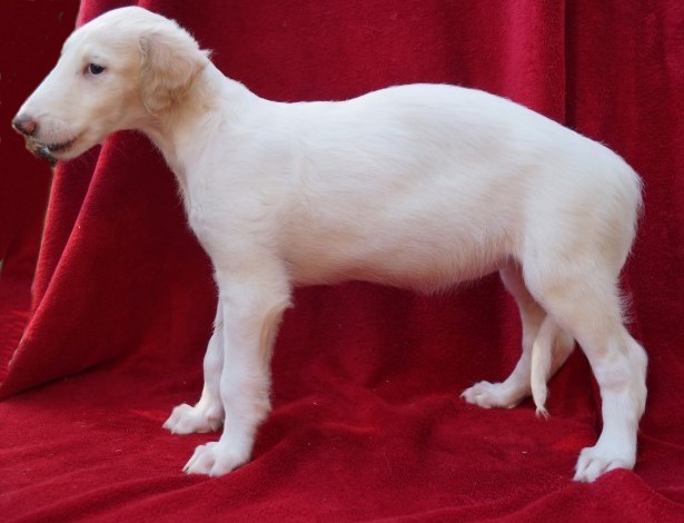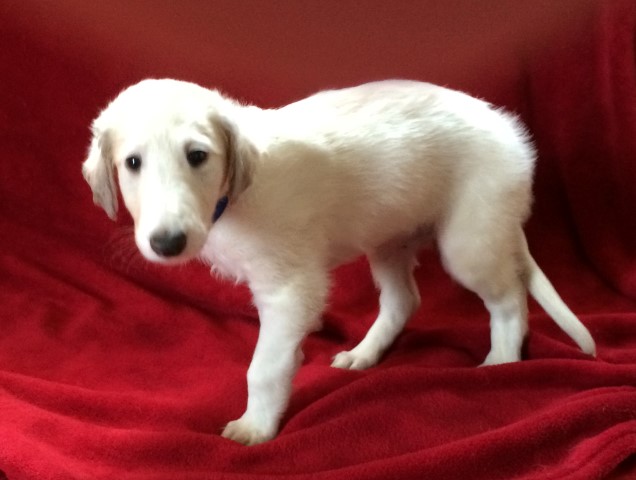 29.01.2015: Aquamarin ist schon ein richtiger Barsoi: 64 cm und 24 Kg ! Und was für ein Fell er schon hat!